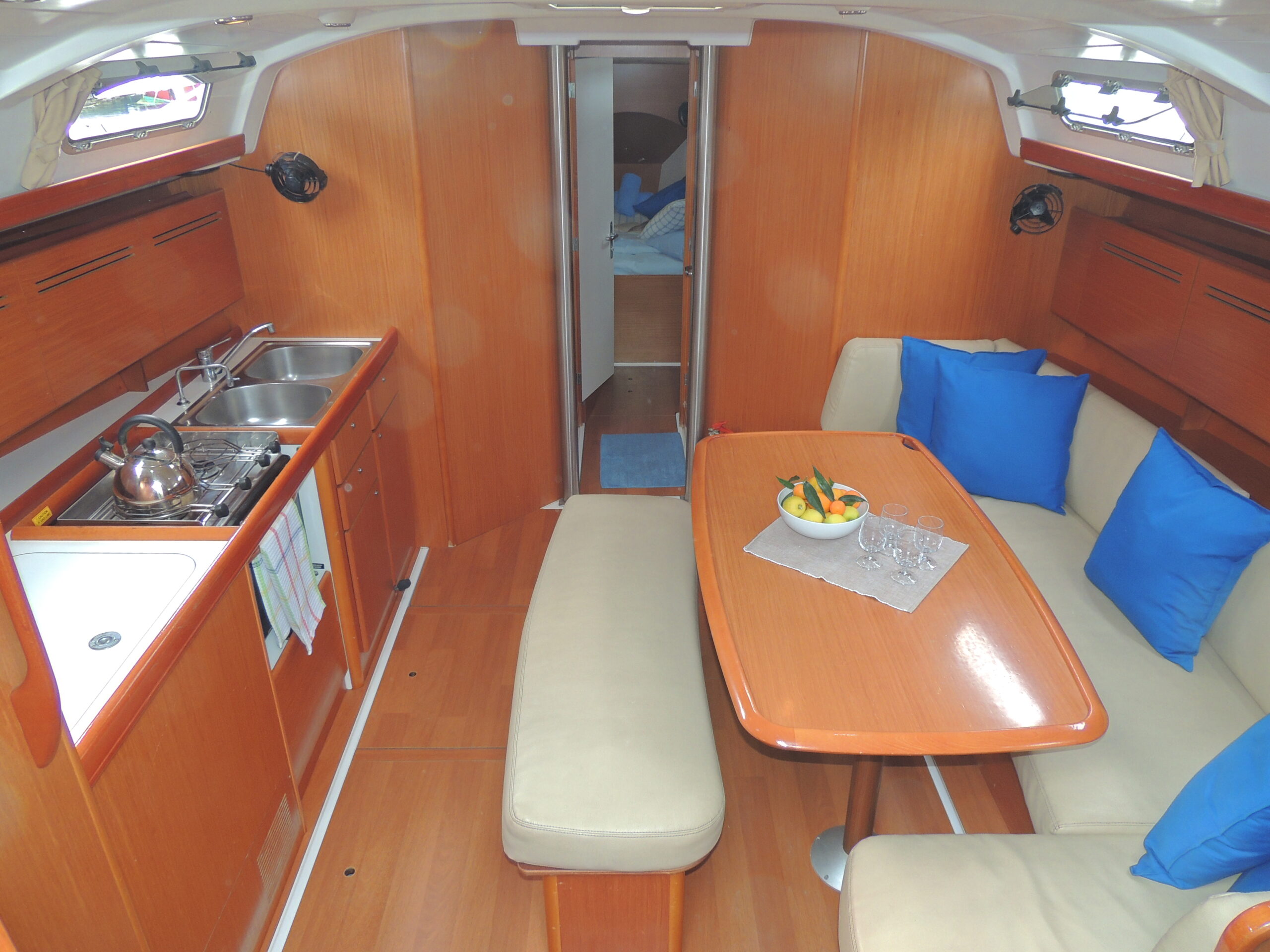 Na luksuznoj jedrilici od 15 metara, za 8 osoba, sa 4 dvokrevetne kabine, 2 kupatila, kuhinjom, u prostranoj dnevnoj sobi bi bio smeštaj.